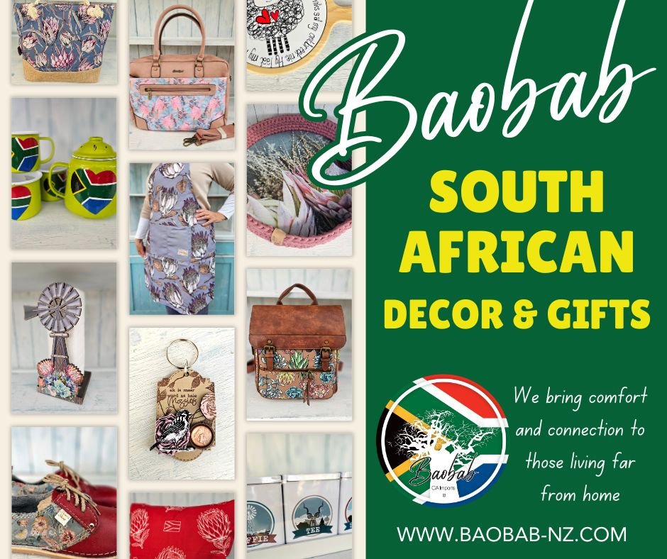 From Afrikaans sayings to Protea and Windmill themed decor and gifts, handbags, vellies and everything in between! Boabab ships all over New Zealand and Australia.